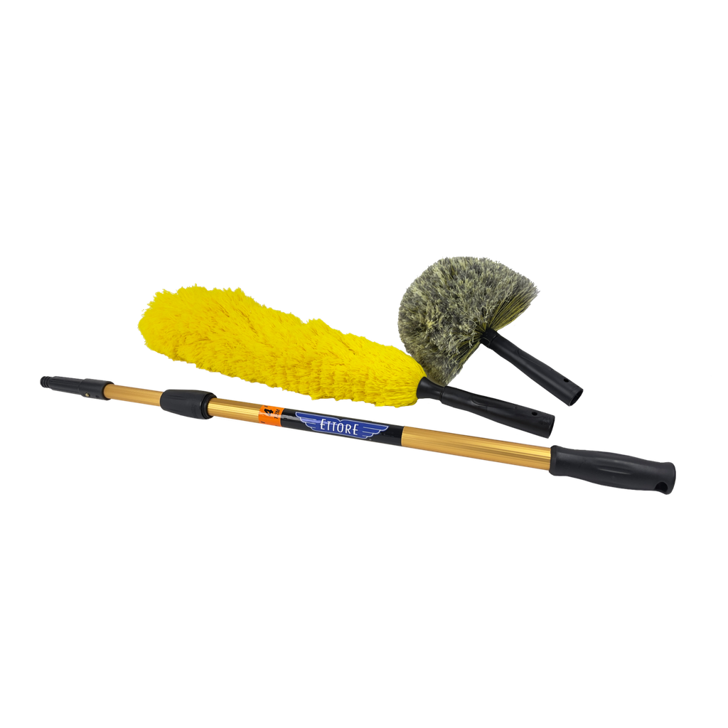 De Ettore Elite Duster Kit is samengesteld uit een REA-C-H telescoopsteel 2x120 cm en een Ettore Elite Cobweb Duster met een Ettore Elite MicroSwipe Duster. De ideale combinatie waarbij 40% me stof en vervuiling verwijdert wordt dan bij traditionele ragebollen en plumeaus.